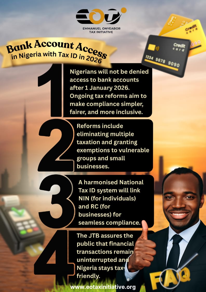 The Nigeria Tax Reform Acts 2025 introduced several sweeping changes to the country’s tax landscape. Among these reforms is the requirement for a tax ID to operate a banking account in Nigeria. The measure is set to take effect in January 2026.