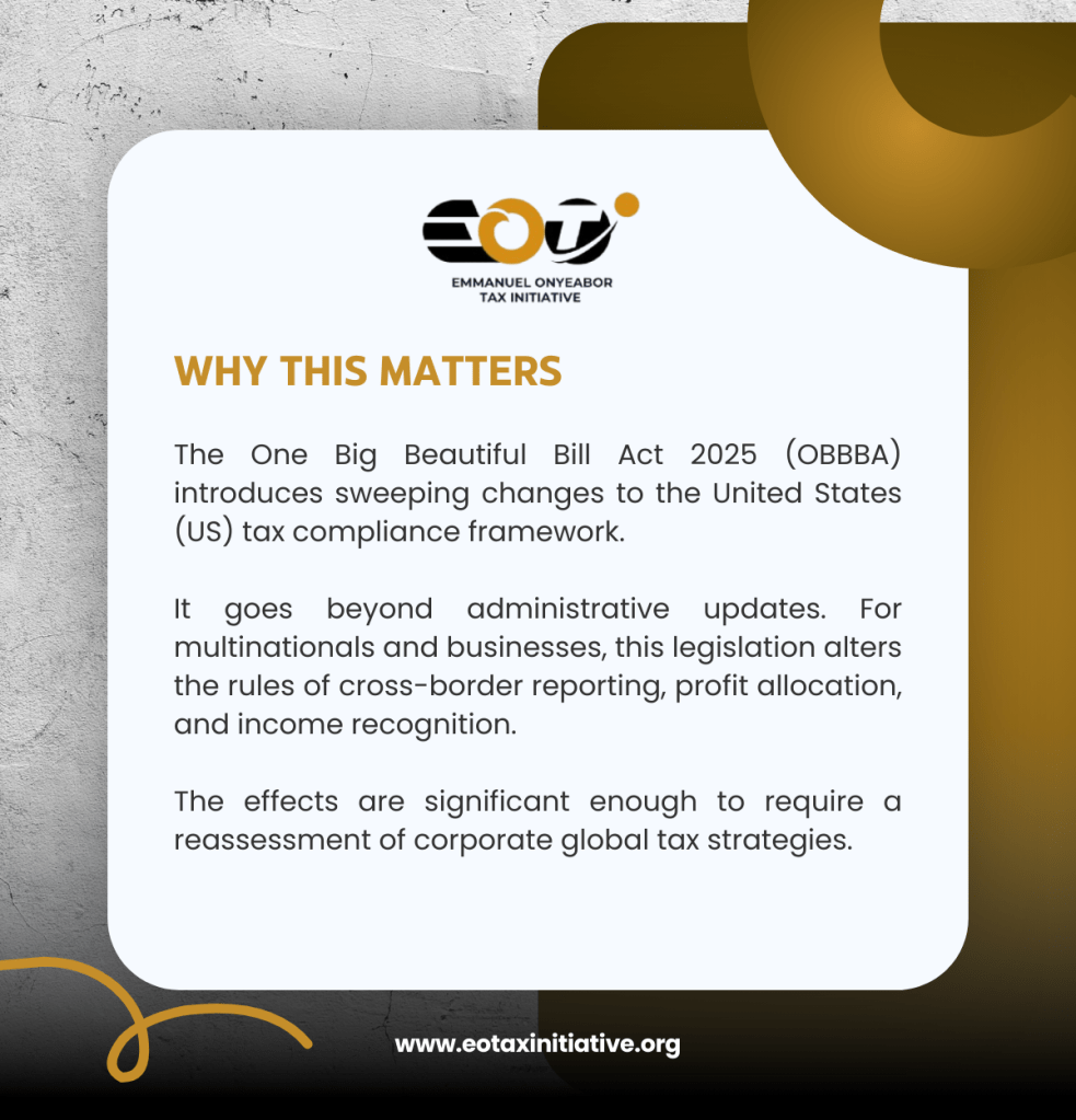 The One Big Beautiful Bill Act 2025 (OBBBA) introduces sweeping changes to the United States (US) tax compliance framework. It goes beyond administrative updates. For multinationals and businesses, this legislation alters the rules of cross-border reporting, profit allocation, and income recognition. The effects are significant enough to require a reassessment of corporate global tax strategies.